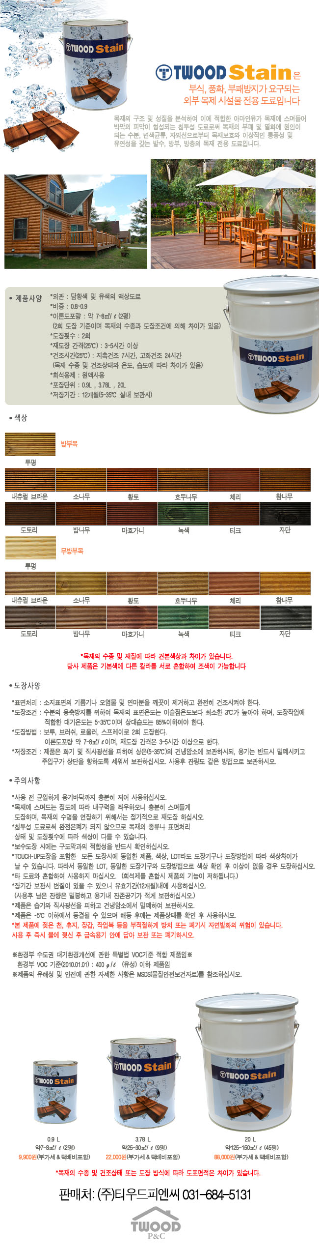 티우드오일스테인을 제조, 판매합니다.