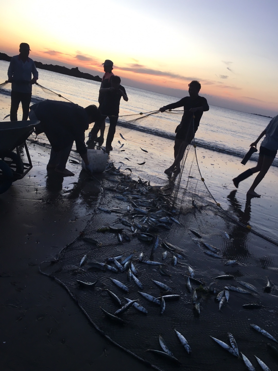 사장님께서 빌려주신 그물로 후리질을 하였더니