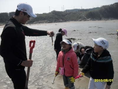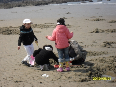 그 주변쪽 진너머 해수욕장에서 물떼시간을 맞춰 난생처음 맛조개 체험도 경험하게 되고..